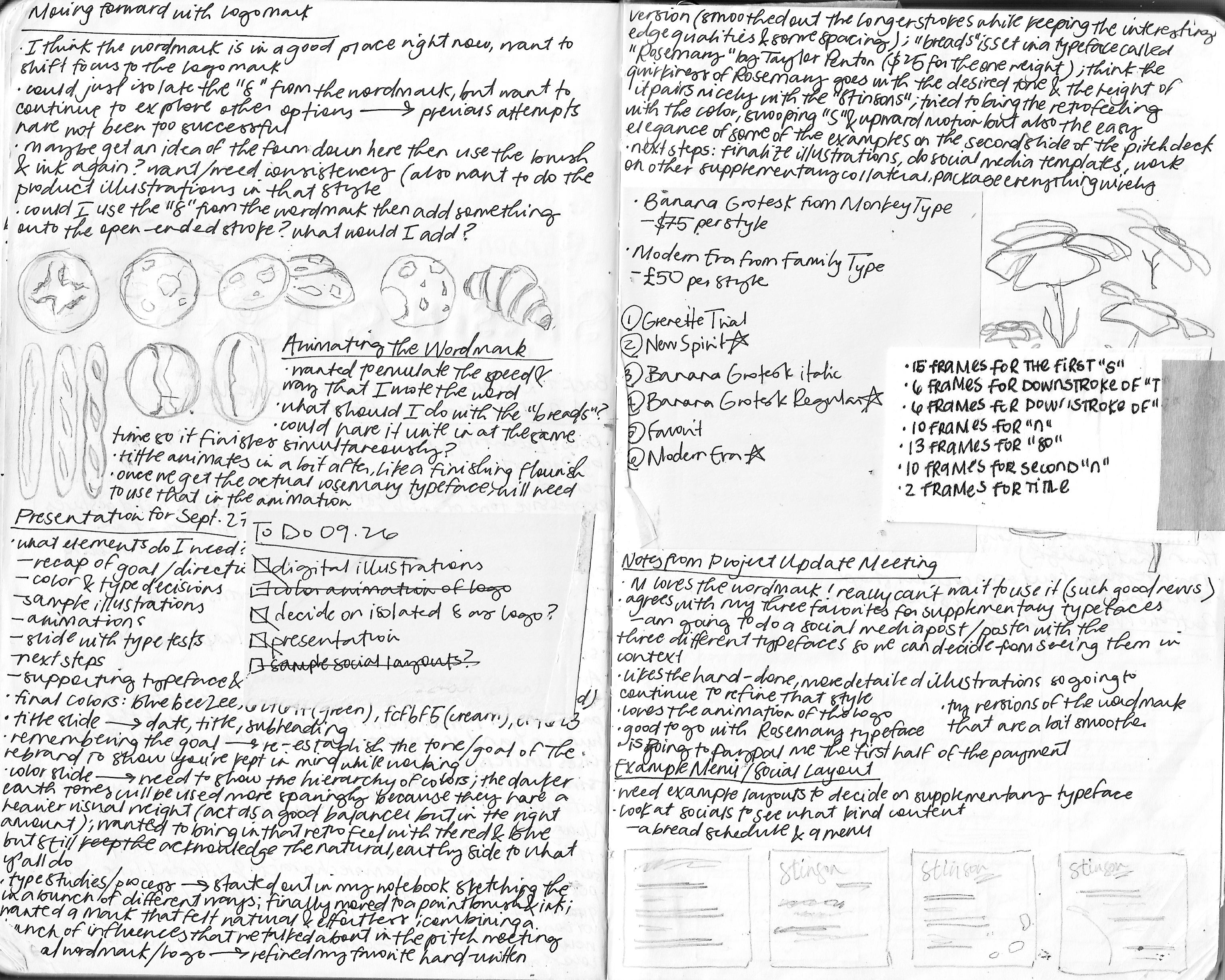 I conducted extensive hand-lettering research for this project and made a small booklet of the specimens. Using different brushes, amounts of ink, & writing styles, I was able to get a handle on the flow of the word and create different examples for the client to look at in the process. Even though the final wordmark was crafted digitally, these writings were a quick way for me & the client to narrow down directions.