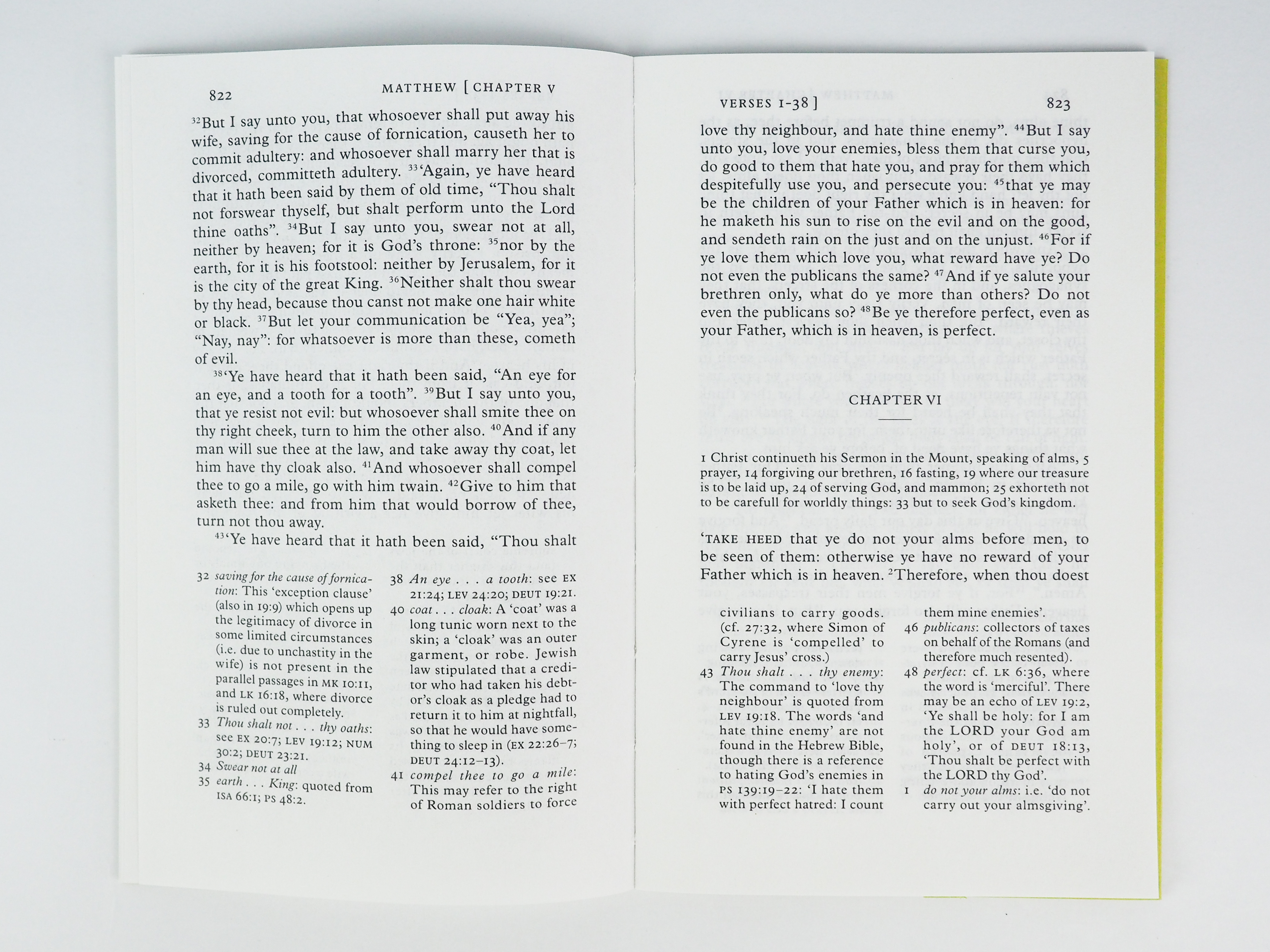 By designing and implementing a system that addresses all macro and micro typography needs, I created six books that act as parts of a unified whole. Choosing to design for the low-end of the market, my titles are economical in size and the design decisions were made with this market's requirements in mind. However, thinking about my own reading practice I wanted to make sure there was enough margin to annotate the book.