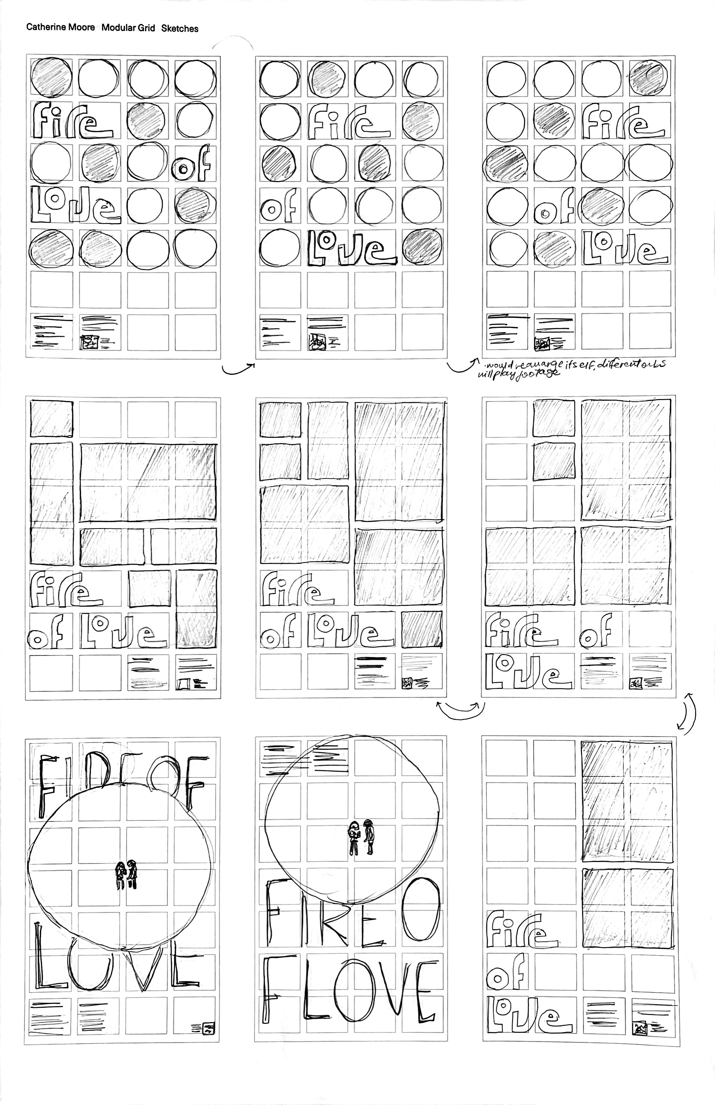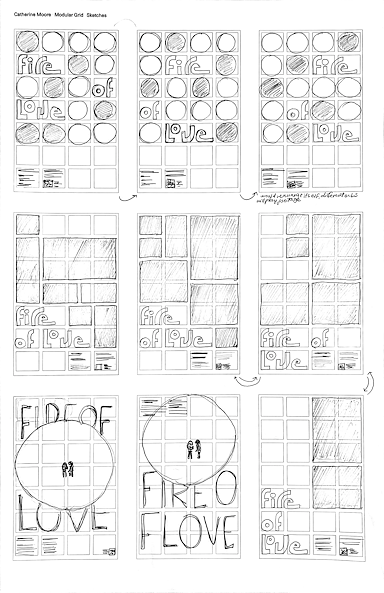 high fidelity sketches of the logotype, finalized grid and animated orbs