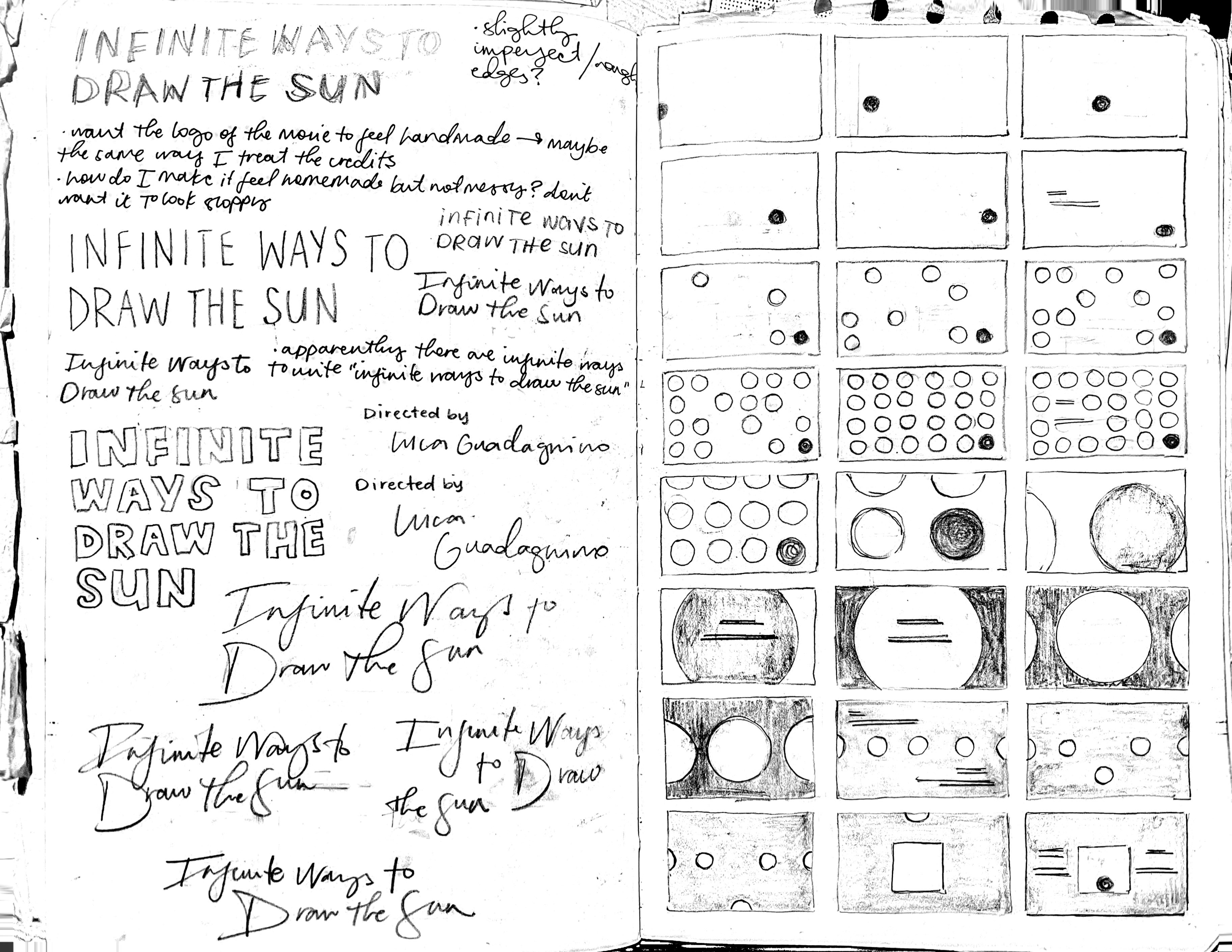 Infinite Ways to Draw the Sun is a fictional film for which I created the opening title sequence. The movie would be a documentation of the experience of a woman working through her creative process. The focus on her, the viewer would be swept away by the captivating ups and downs of the generation of a project.