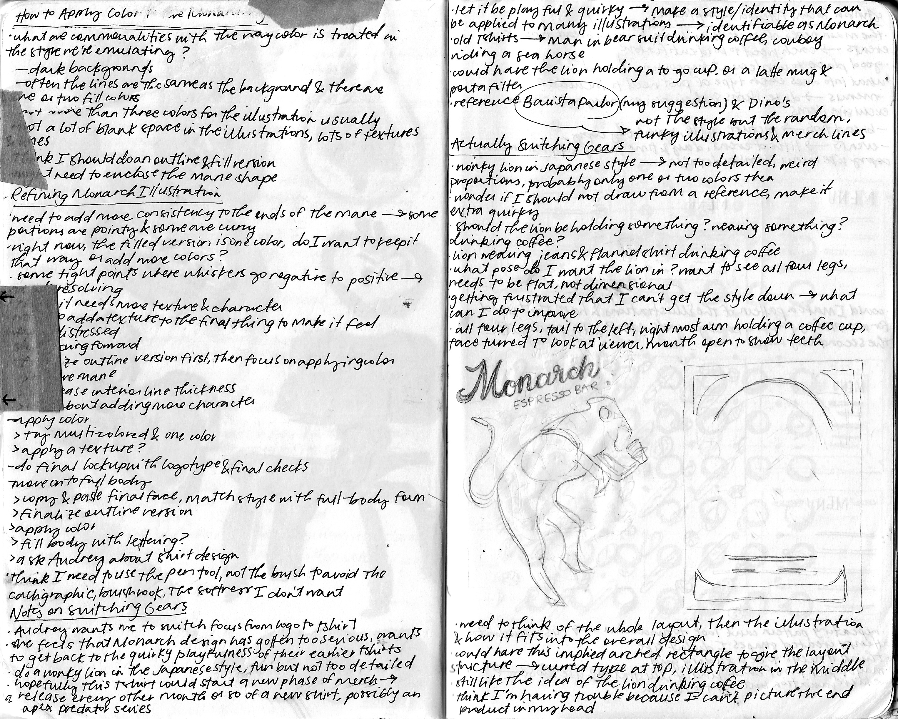 Monarch Espresso Bar, a local coffee shop in Tuscaloosa, Alabama, is dedicated to providing both a quality cup of coffee and a quality experience. Part of this experience is selling funky, fun merchandise that lets customers participate in the company’s unique spirit. To help with this, I was asked by the owners to design a trio of Japanese-style illustrated t-shirts they could release as their newest line of merch.